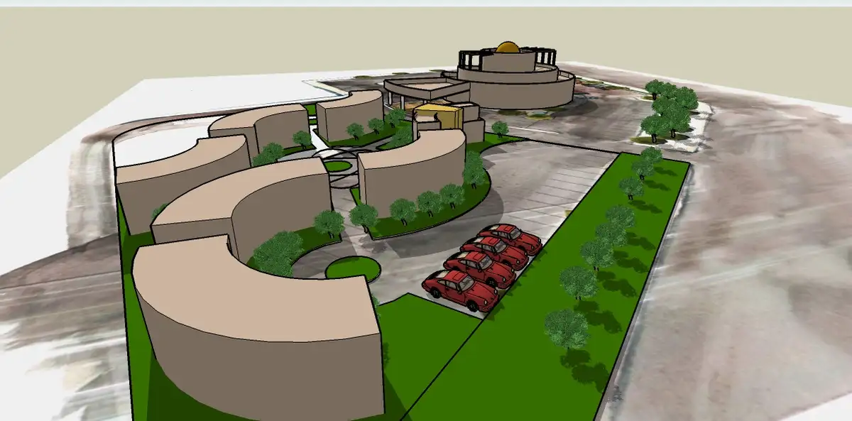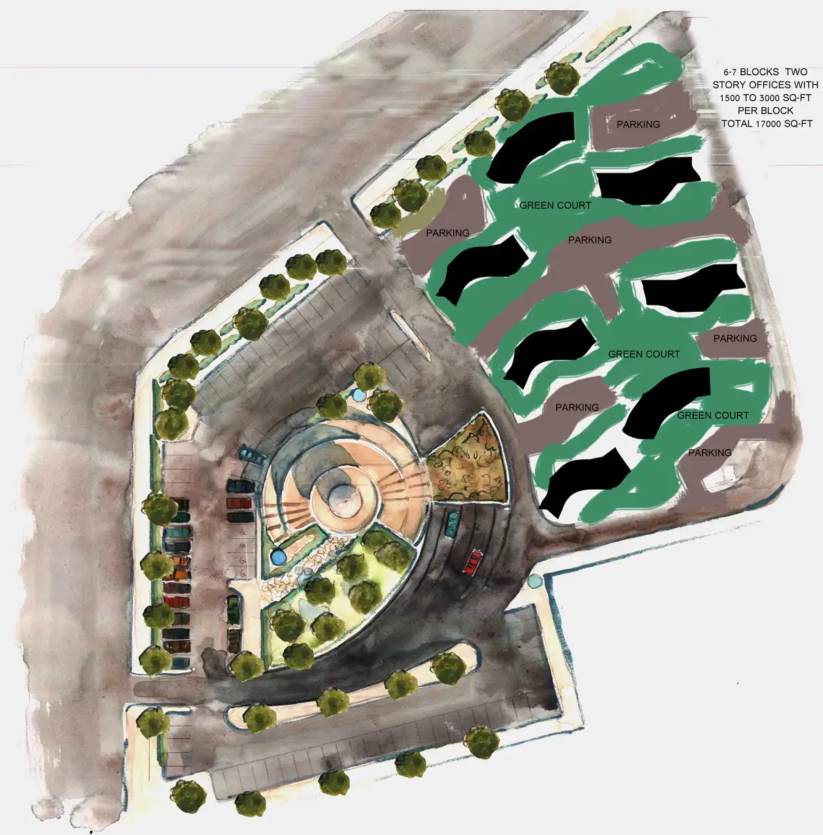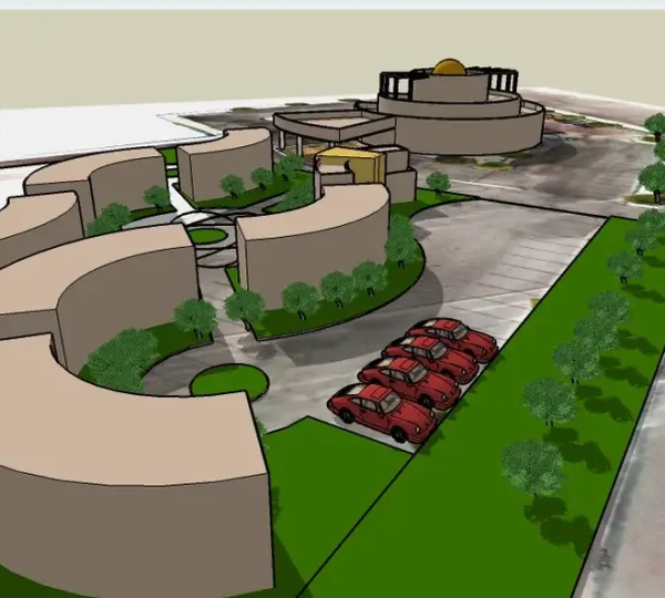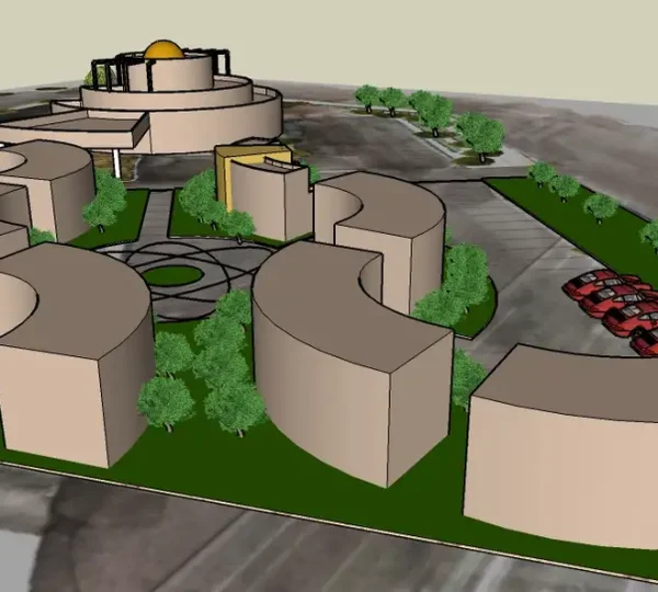The Los Alamos Bank Proposal by Birkani International, INC presents a modern financial campus design characterized by its fluid, curvilinear architectural forms. The proposal emphasizes a series of interconnected circular building segments that optimize administrative flow while providing a welcoming, open atmosphere for clients. By integrating strategic landscape design with organized parking facilities and contemporary facade elements, we have developed a concept that balances security with aesthetic transparency. This project showcases our expertise in commercial master planning and our ability to create sophisticated, large-scale professional environments that prioritize functional layout and structural elegance.